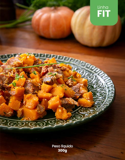 Frango suculento com batata-doce em porção de 450 gramas, pensada para dar mais saciedade e energia constante. Uma combinação equilibrada de proteína magra e carboidratos complexos, com sabor de comida caseira e preparo prático.