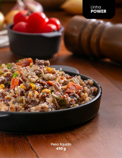 Frango desfiado, bem temperado, acompanhado de palmito pupunha em conserva e milho verde, em uma combinação que une sabor delicado e contrastes de textura. O palmito traz leve crocância, o milho entrega um toque adocicado, e o colorau realça o aroma e a cor do prato. Uma refeição leve, rica em proteínas e perfeita para quem valoriza praticidade, nutrição e muito sabor no dia a dia.